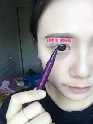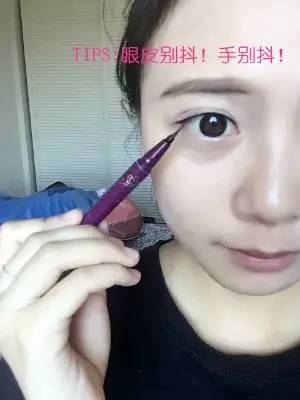 1.我建議剛學(xué)畫(huà)眼線的童鞋,使用液體眼線筆。畫(huà)眼線首先在眼頭、眼中、眼尾各畫(huà)上一筆,定好每個(gè)位置眼線的粗細(xì)。一般來(lái)說(shuō)都是眼頭細(xì),眼尾粗。