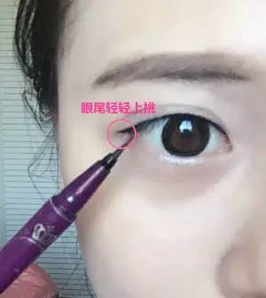 3.最后畫(huà)眼線的時(shí)候記住眼尾要輕輕向上挑