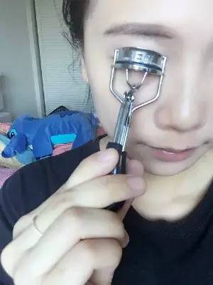 4.夾睫毛:將睫毛夾緊貼睫毛根部,夾一下停留一秒,挪出一點(diǎn),再夾,再停留。也就是將睫毛分成根部、中部、尾部,分段夾,這樣睫毛才能真正夾翹。
