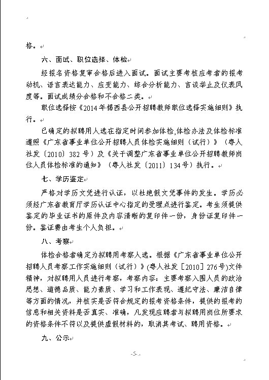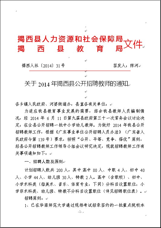 2014年揭西縣公開招聘教師的通知